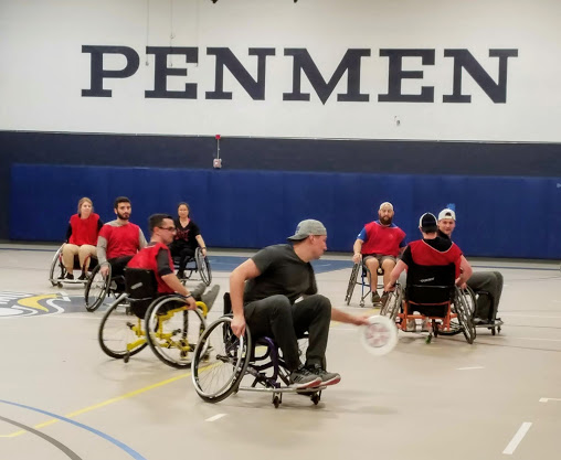 Athletes Roll recently had the opportunity to watch a great event on the Southern New Hampshire University campus. SNHU’s Campus Recreation, in conjunction with Northeast Passage, hosted an open gym afternoon of court sports. On this day, the SNHU students would be playing ultimate. The wrinkle was that they all were playing in wheelchairs. Events like these help raise awareness of adaptive sports and provide an opportunity for able-bodied and disabled people to play together in the same game. The adaptive version plays nearly identical except the players move around in a special court wheelchair and is played indoors on a basketball court.