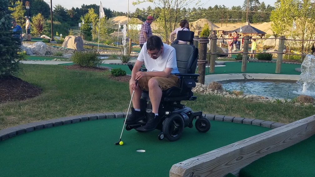 Earlier this month, a group of family and I went to Chuckster’s in Hooksett, NH to play mini-golf. This is significant because I use a power wheelchair to get around, and until recently I didn’t know I could play mini-golf in my chair. There are two full, 18-hole courses at Chuckster’s, and one of them – the Cave Course – is completely ADA accessible! We had a great time playing the course, and I got the chance to speak with Chuckster’s owner Mark Blasko a couple of weeks later.