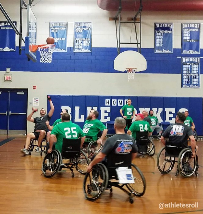 On March 7th, Granite State Independent Living (GSIL) hosted their 9th Annual Hoops on Wheels event at Rundlett Middle School in Concord, NH. This annual wheelchair basketball event raises money for GSIL programs which “promote quality of life with independence for people with disabilities and seniors through advocacy, information, education, support and transition services.” Hoops on Wheels also raises awareness of the incredible adaptive sport of Wheelchair Basketball. The games were played on two courts at the school with round robin games in the morning followed by an 8 team competitive tournament in the afternoon. Athletes Roll was able to stop by to take in some of the action and chat with the event coordinators, GSIL staff and some of the teams competing.