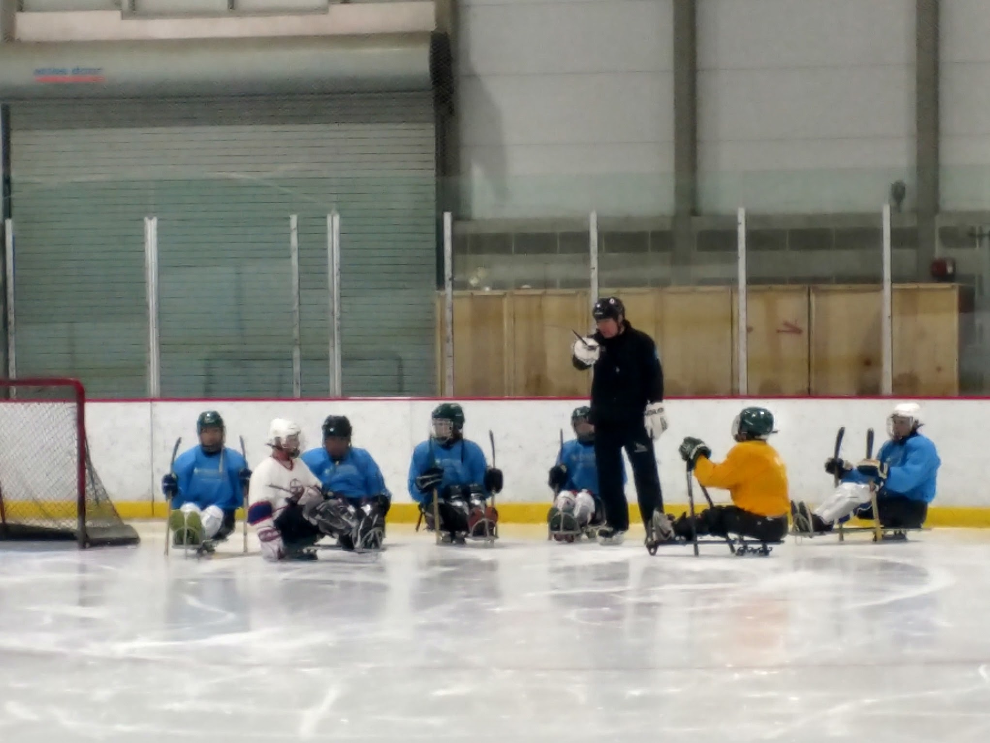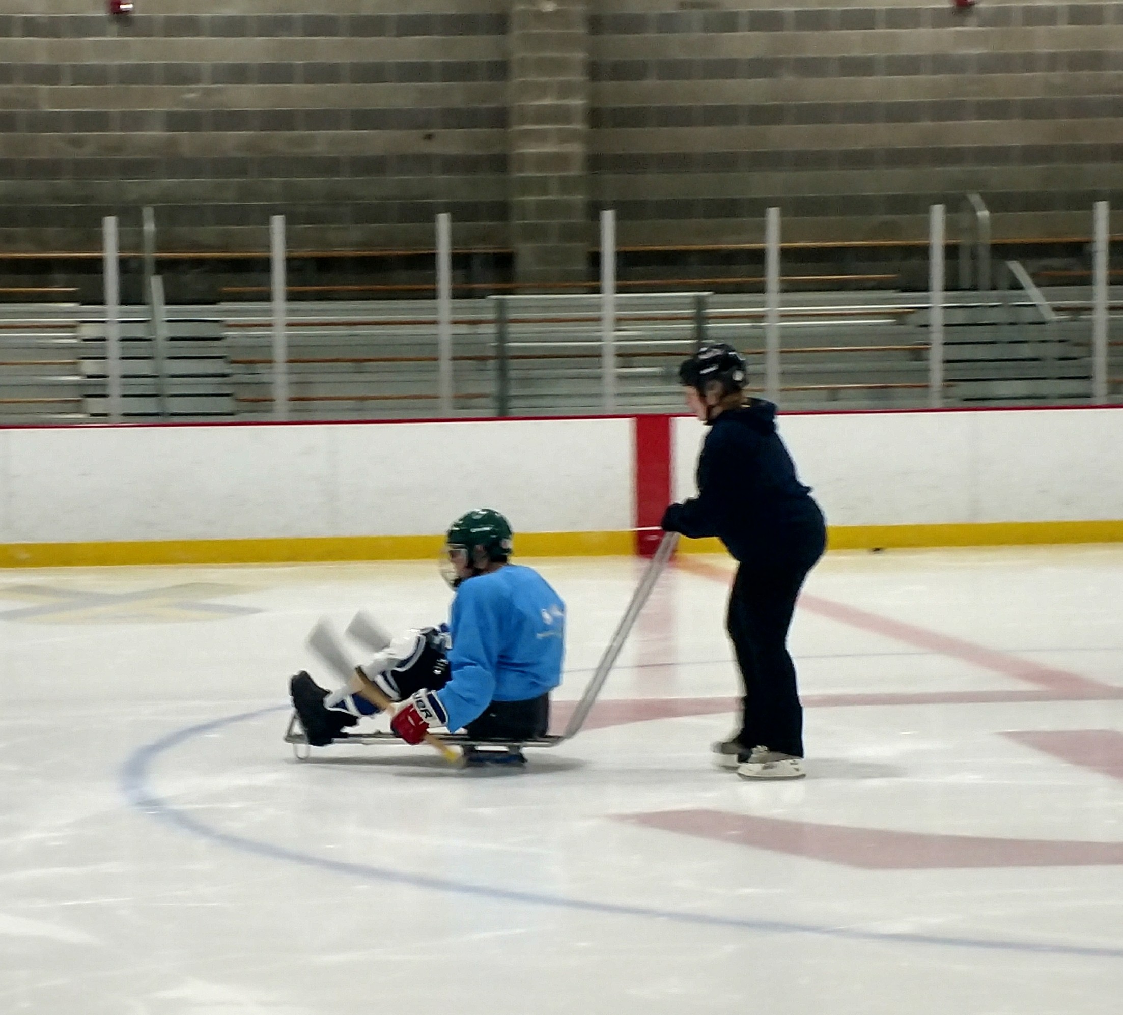 - Sled Hockey (AKA Sledge Hockey) is a 5-on-5 sport with gameplay that nearly mirrors that of its able-bodied counterpart, ice hockey. Athletes sit in a seat (known as a bucket) that slides on the ice on two parallel skates and propel themselves with the ends of two shortened hockey sticks.