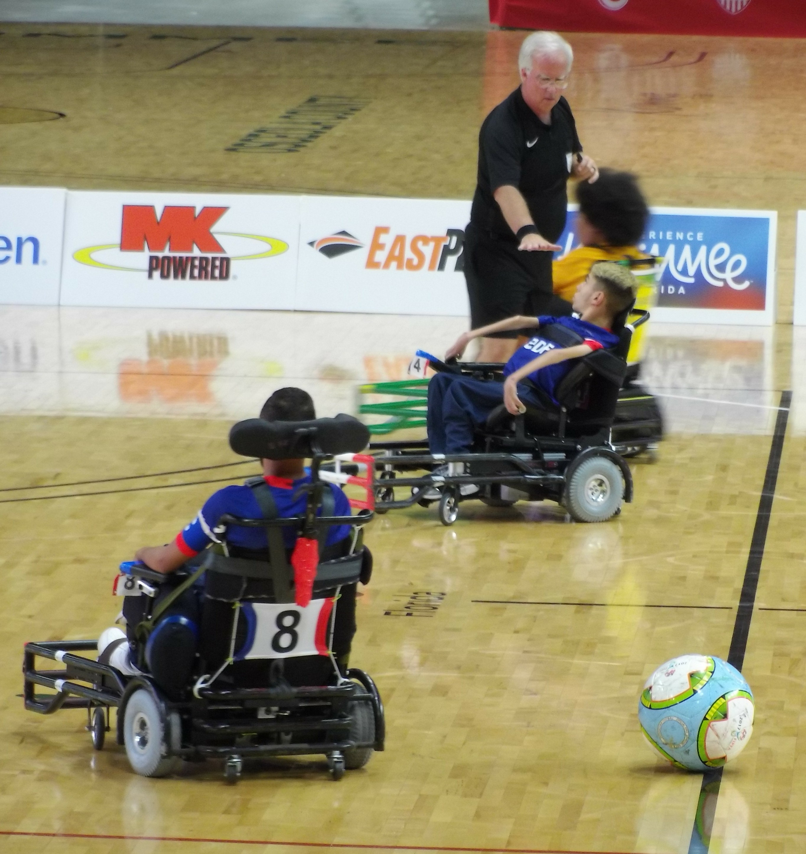 - Power Soccer (AKA Powerchair Football) is a 4-on-4 form of soccer played on a basketball court by anyone that makes use of a power wheelchair. Players pass and shoot a larger-than-usual ball with a metal guard around the chair, aiming to move past defenders and the goalie. It is a fast-paced sport by any standards and is expanding rapidly around the country and around the world. Power Soccer is the sport that got Athletes Roll started and introduced us to adaptive sports!